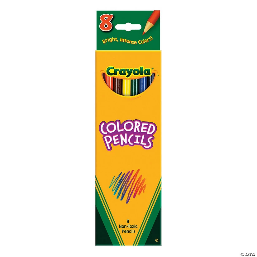 These thick, bright and easy-to-handle Crayola® colored pencils are art supplies that are just right for smooth drawing and coloring. Stock up for a rainy day or make sure you have enough for each kid in the class to create their own works of art. Pre-sharpened (3.3mm tip) for immediate use. Full length, tuck box. Safe and non-toxic. Wood. (8 assorted colors per set) 7″ Conforms to ASTM D-4236.