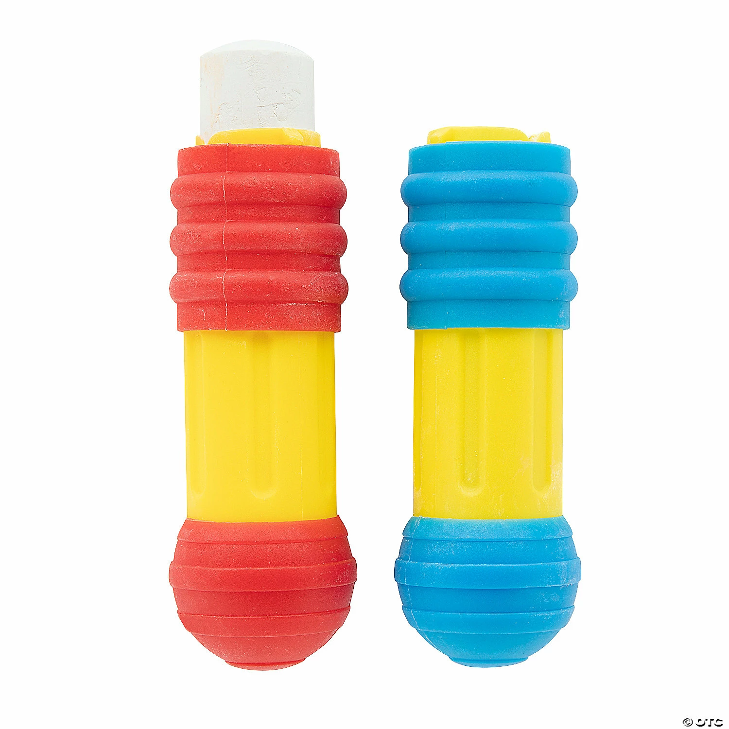 Make chalk easier for small hands to grip with these colorful chalk holders. Each chalk holder features bright colors and convenient grips, making chalk easier to use for young students or people with grip challenges. Add these chalk holders to your classroom supplies or use them in occupational therapy for patients working toward better hand dexterity and grip. Plastic. 1 1/4″ x 4″ Chalk not included, sold separately on this website. ยฉ OTC