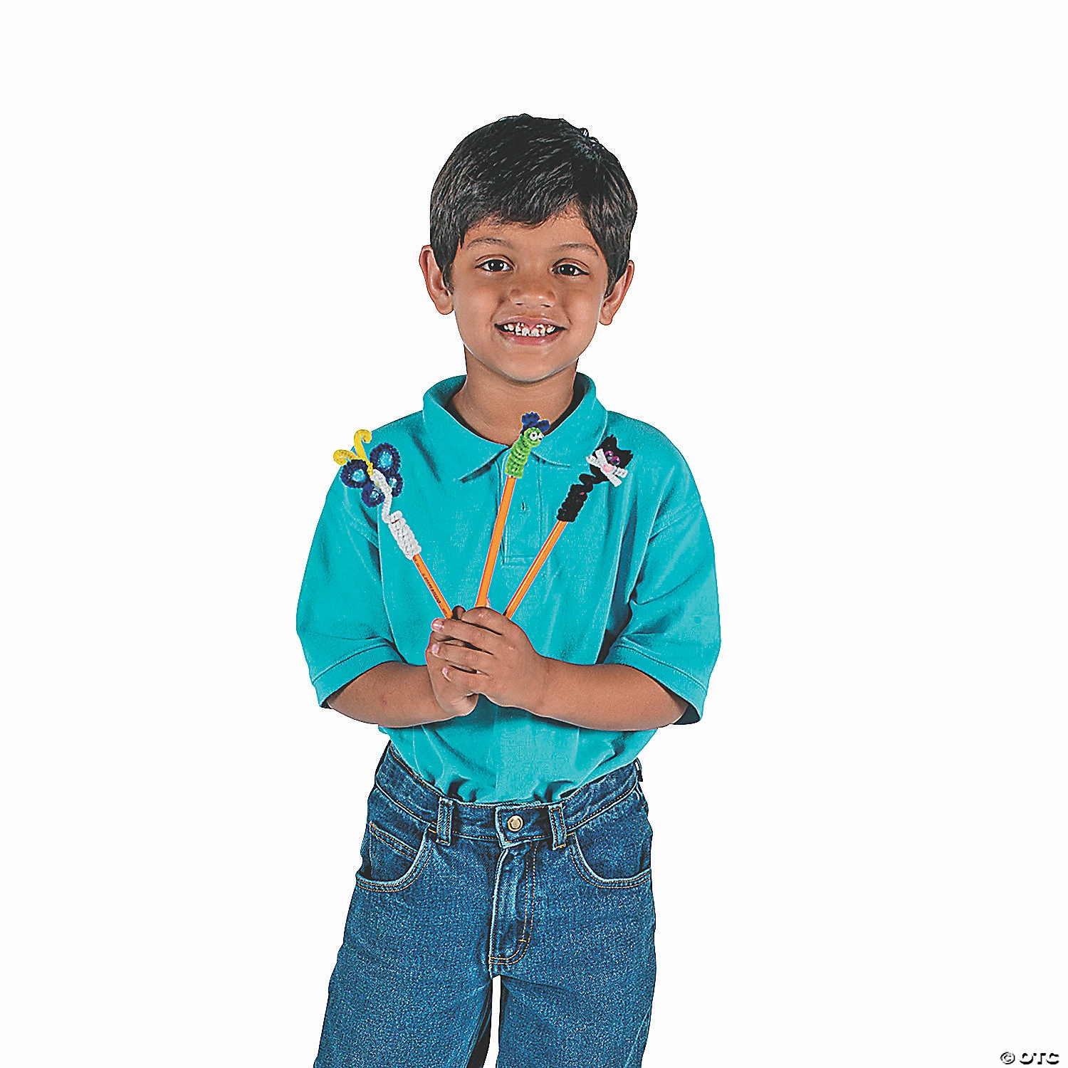 Chenille Stems. Crafters love these chenille stems! There’s so many crafts you can make with these colorful, bendable chenille stems! Make flowers, silly characters, butterflies…the list goes on and on! Comes in black, white, green, orange, yellow, red and blue. (100 pcs. per unit) 12″ (6mm)