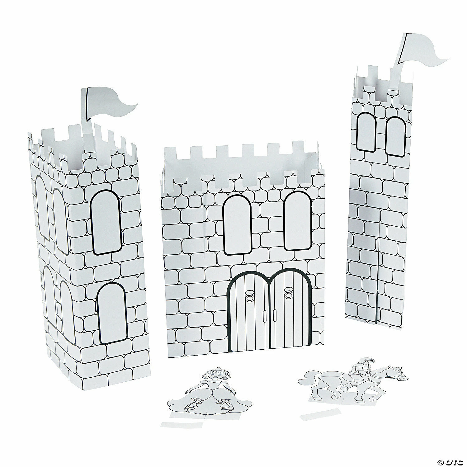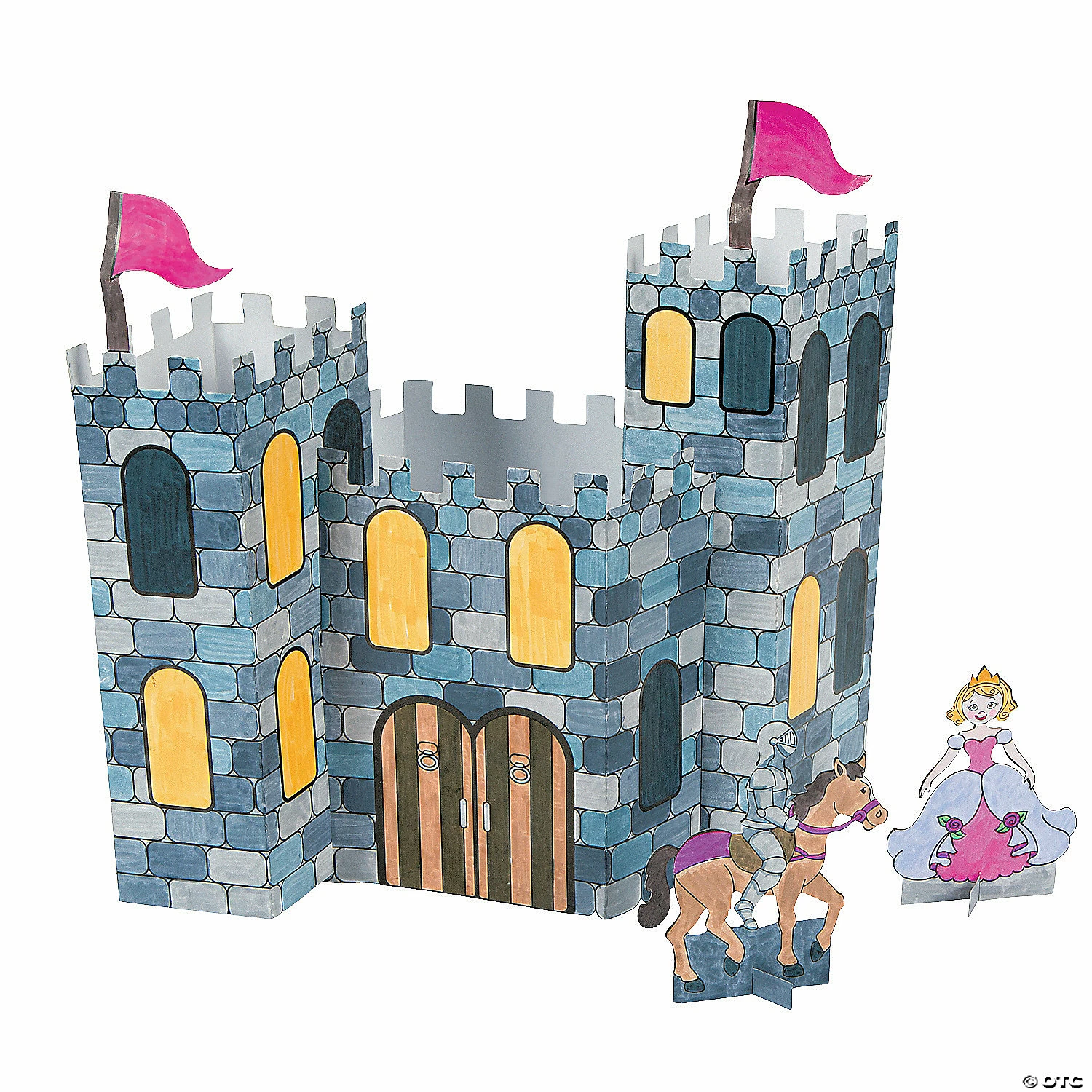 like this DIY toy castle, will give kids a great sense of accomplishment and improve their self-esteem. They will beam with pride when they see this finished masterpiece at school or in the playroom!• DEVELOP FINE MOTOR SKILLS – Coloring involves the manipulation of small objects and requires several simultaneous actions like gripping and pressing. These motions help build the muscles of the fingers, hands and wrist. This 3D project is also a great way to promote dexterity and critical thinking skills as kids build their own castles.• SPARK IMAGINATION & PROMOTE SELF-EXPRESSION – Give your little artists wings with this fun castle coloring project. Let kids choose their colors and watch their creativity take flight!Product Description:Take your imagination on an adventure to your own castle! Color and assemble your own 3D castle for playtime that’s simply magical. Little princes and princesses love pretending they’re royalty when they decorate their castles in their favorite colors. We recommend using crayons, colored pencils, washable markers or permanent markers, sold separately online.Size: 9″ x 6″ x 12″ with 3″ x 4″ cutouts of knights and princesses.Quantity: 12Material: Paper© OTC