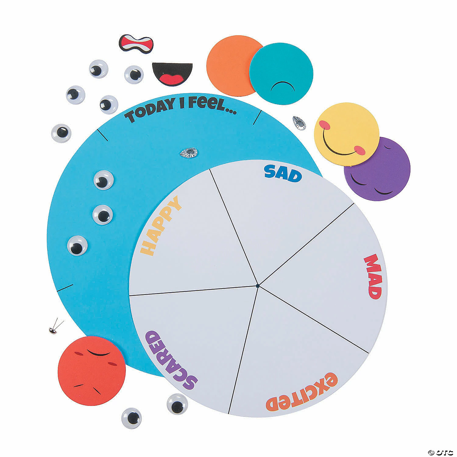 • HAVE A BLAST! – When it comes to creating art, the possibilities for fun are endless! Kids will have a blast coloring in their wheel and using the foam pieces to gain emotional intelligence.• BOOST CONFIDENCE – Completing a coloring project, big or small, will give kids a great sense of accomplishment and improve their self-esteem. They will beam with pride every time they use this wheel to describe their daily feelings.• DEVELOP FINE MOTOR SKILLS – Coloring involves the manipulation of small objects and requires several simultaneous actions like gripping and pressing. These motions help build the muscles of the fingers, hands and wrist. Working with lots of little and larger shapes on this coloring activity will help kids build these skills and their writing over time.Product Description:Teach children how to self-assess their emotions and recognize how they’re feeling with help from this How I Feel Wheel Craft Kit. Elementary students will have fun assembling their own wheels, and then the finished crafts are a great way for them to express their emotions in appropriate ways. Each individual wheel is equipped with self-adhesive foam pieces, paper, metal brads and plastic googly eyes. All craft kit pieces are pre-packaged for individual use. Kits include instructions. Size: 10 1/4″ diam. Quantity: 12Material: Paper, Foam© OTC