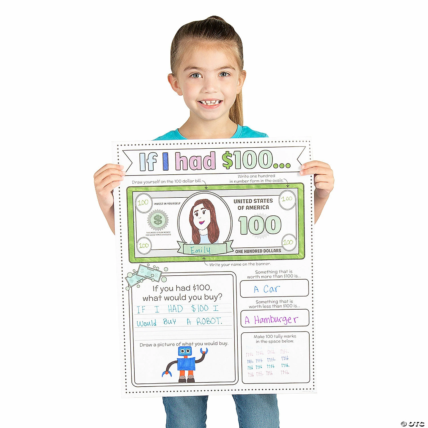 Flash Sale ⌛ Color Your Own If I Had 100 Dollars Posters – 30 Pc. ✔️