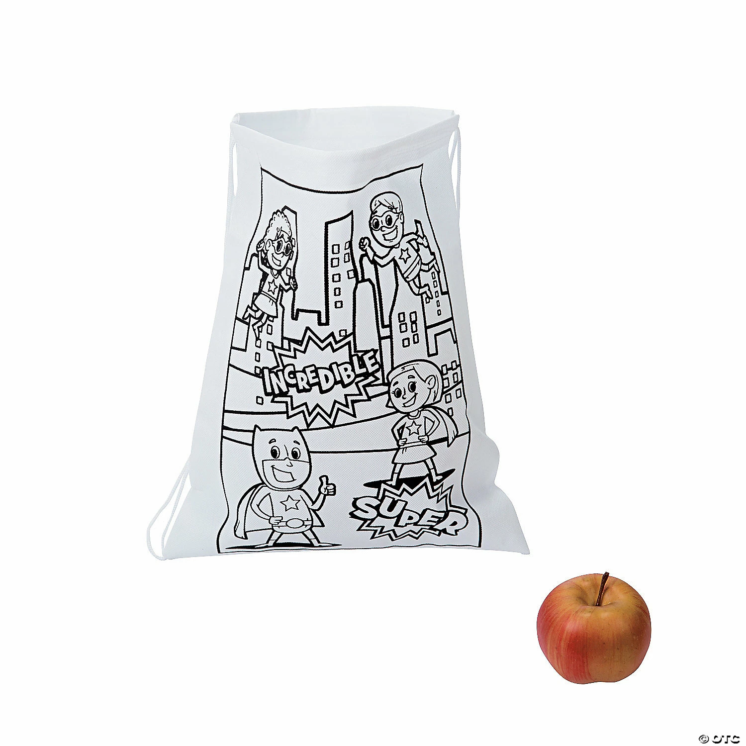 New 🤩 Color Your Own Medium Superhero Drawstring Bags – 12 Pc. 🎁