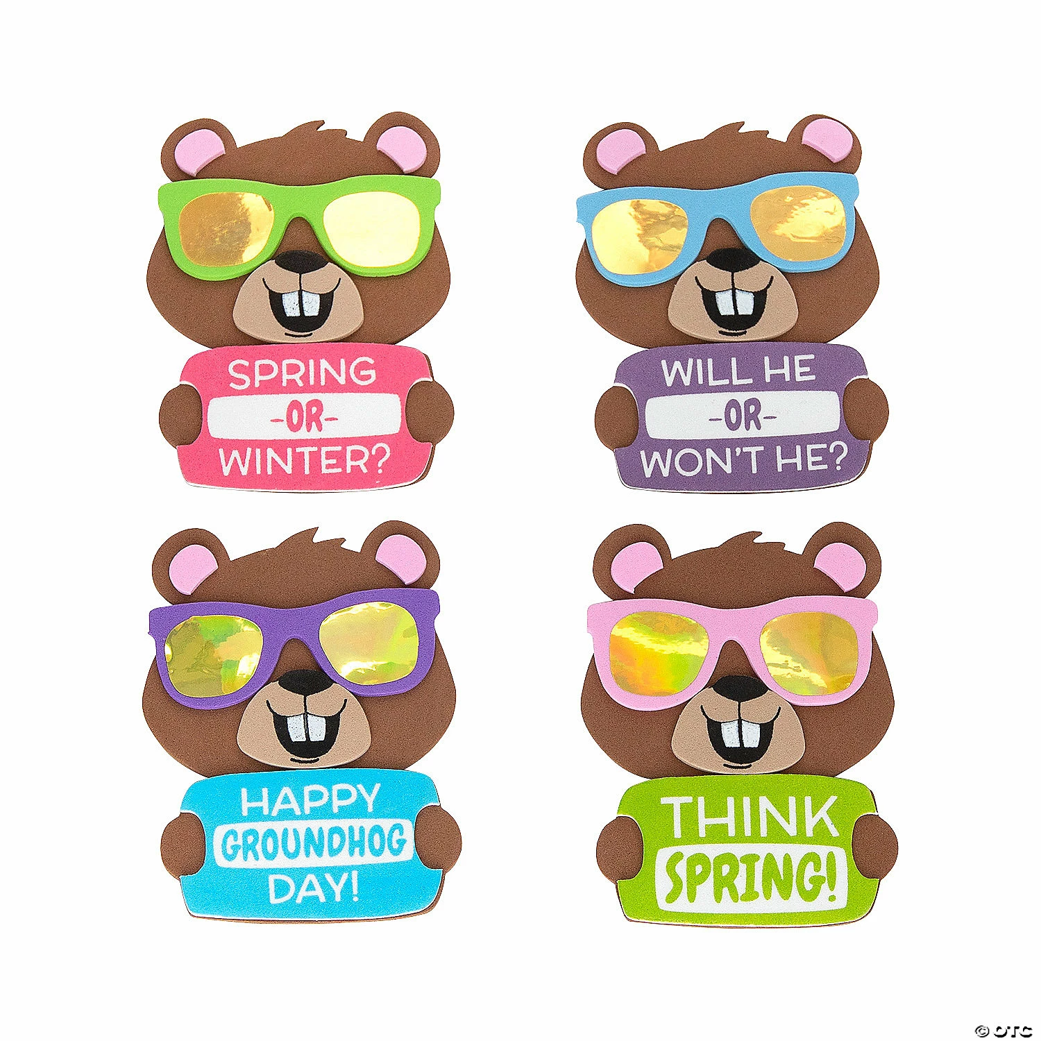 Is there anything cooler than a smiling groundhog wearing sunglasses? This fun craft is perfect to accompany Groundhog Day on February 2nd. Kids will have fun putting together this simple craft and will be proud to display their finished piece on the fridge or any metal surface. This craft is great for the classroom or as an activity at a Groundhog Day celebration! Includes self-adhesive foam pieces and foil stickers. 3″ x 4″ Makes 12. All craft kit pieces are pre-packaged for individual use. Magnets are packaged separately. Do not discard. Kits include instructions. © OTC