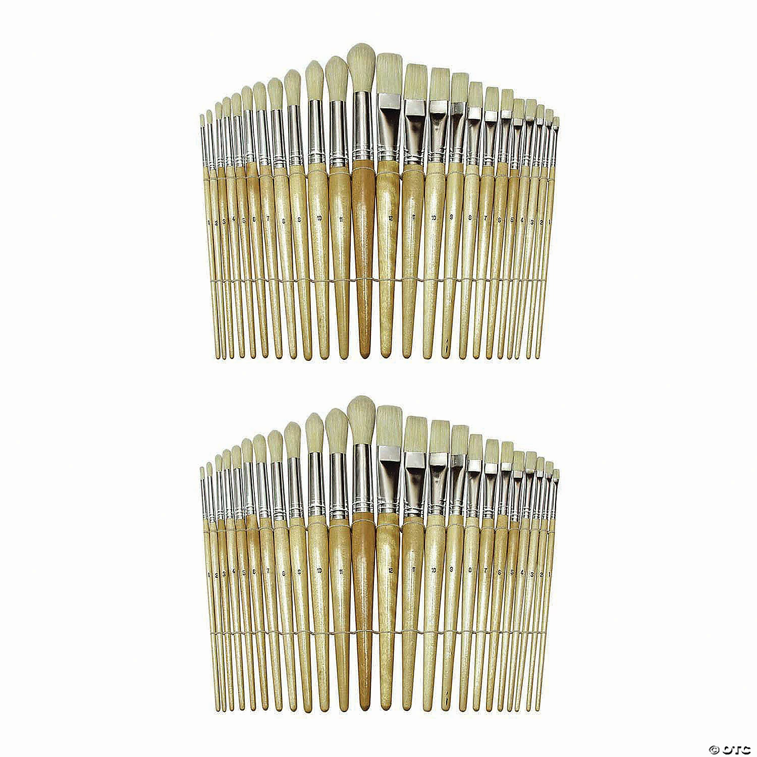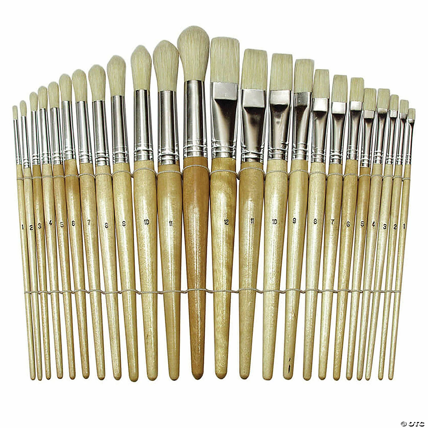 This 24 piece Preschool Brush Set includes 12 flat (#1 to #12) and 12 round brushes (#1 to #12) with seamless nickel plated ferrules, clear finish hardwood handles and natural hog bristles. These brushes are perfect for tempera paint. Sold as 2 packs, 48 paintbrushes total. Special Shipping Information: This item ships separately from other items in your order. This item cannot ship to a P.O. Box. This item may be subject to additional processing days. ITEM IS NOT ELIGIBLE FOR EXPEDITED SHIPPING You may initiate a return for unused items within 30 days, if the items are in original packaging with all original materials included with the shipment.