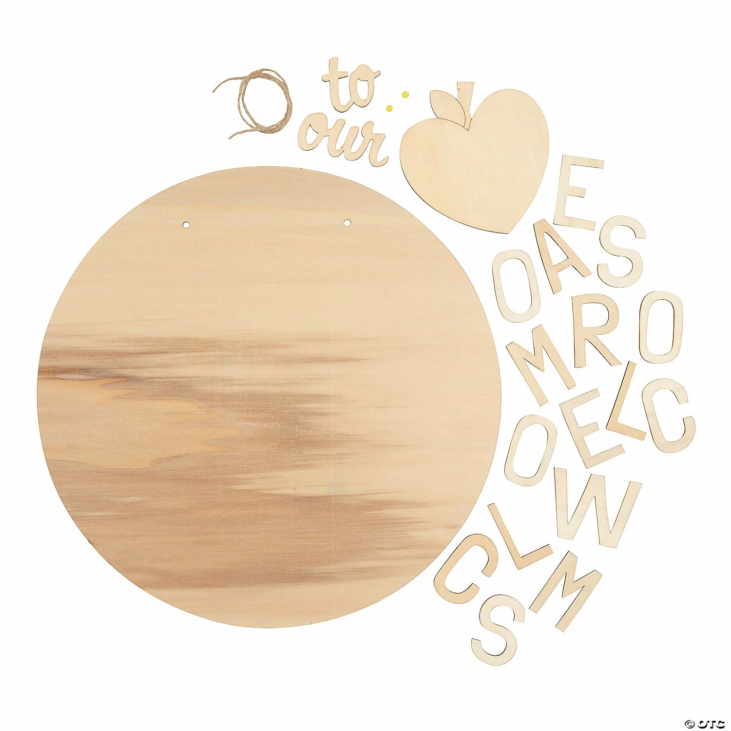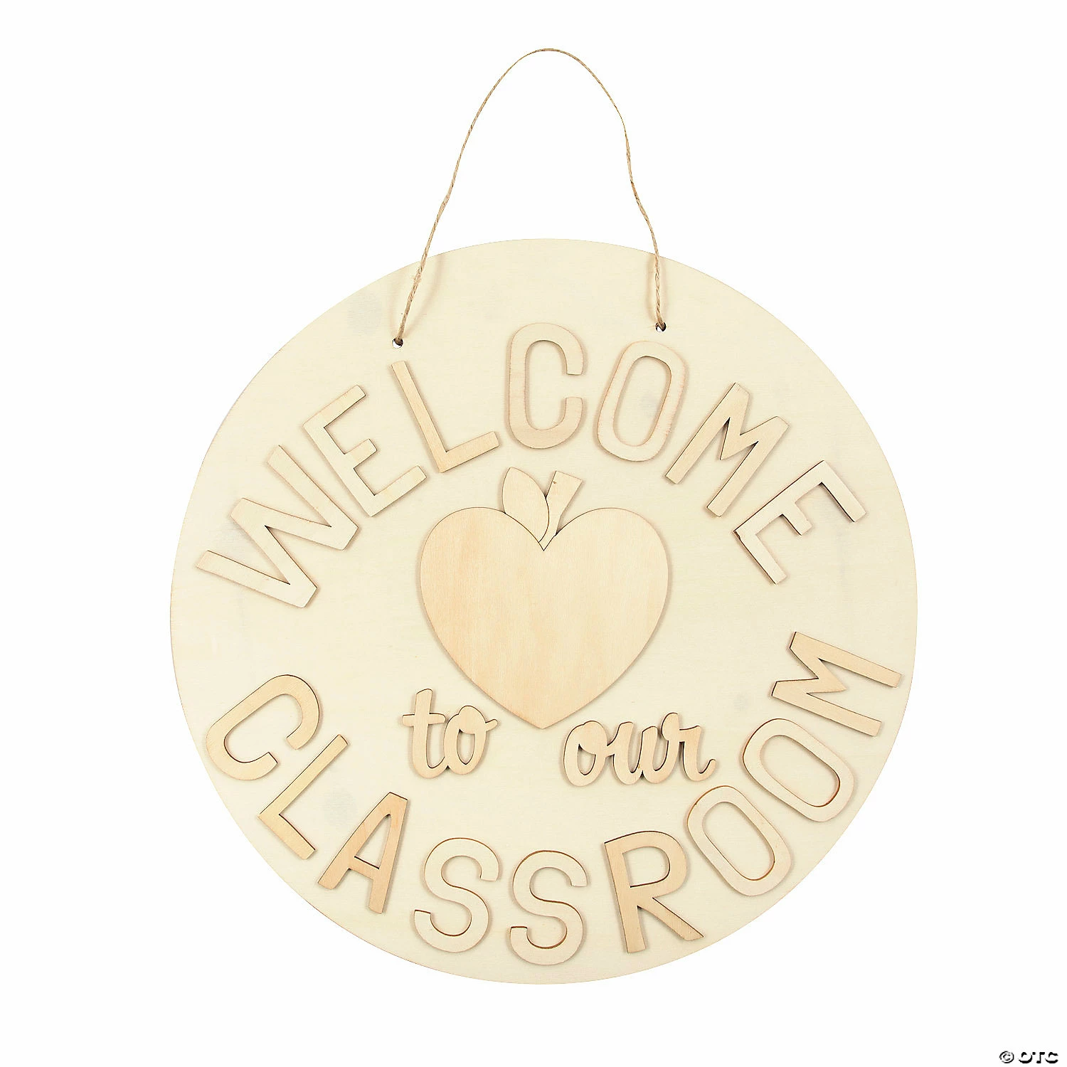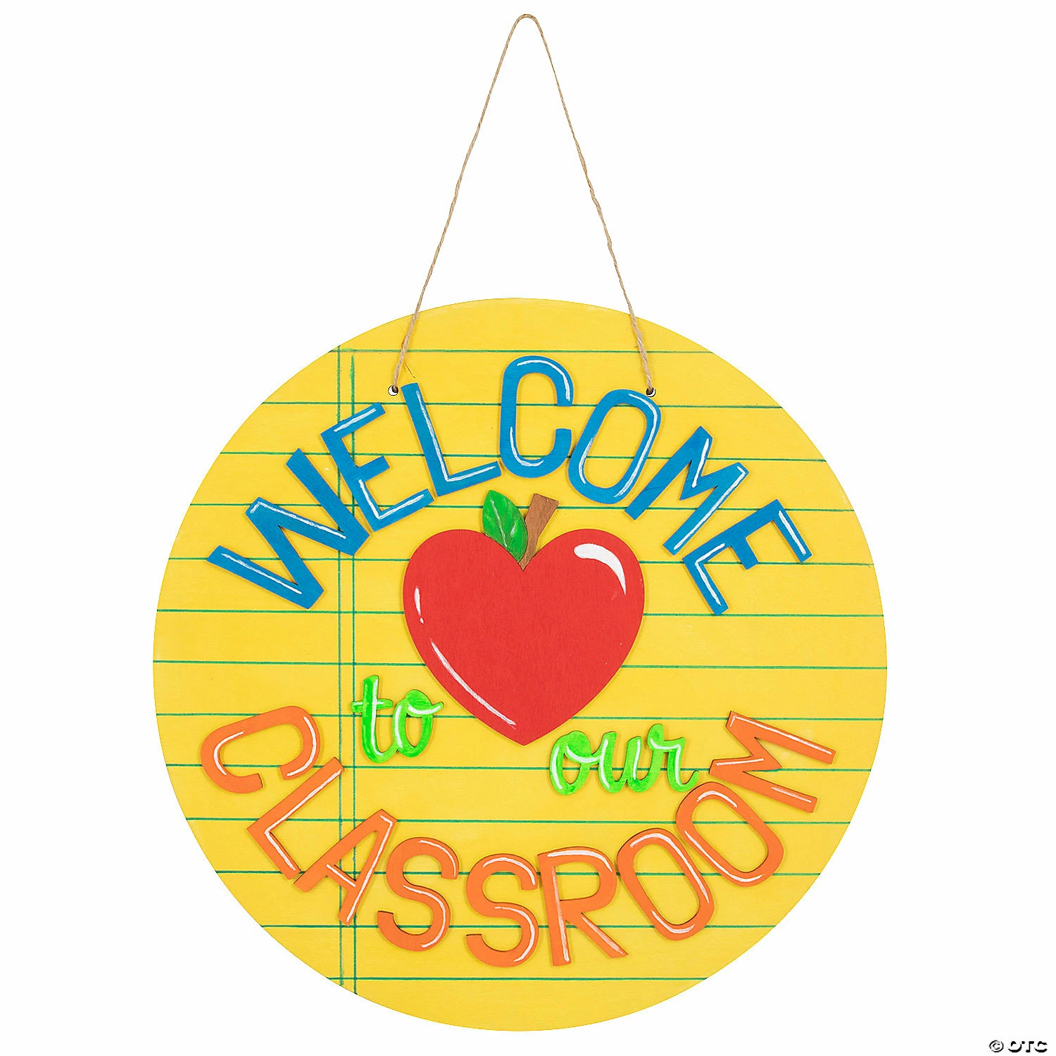 Greet your students every morning with this adorable door sign! This DIY craft project features a heart-shaped apple and letters that spell out the message “Welcome to our Classroom”. Decorate it with paint, glitter and other embellishments then hang on your classroom door to welcome all visitors. Wood with jute cording. 15″ diam. Some glue required, sold separately. Simple assembly required. © OTC