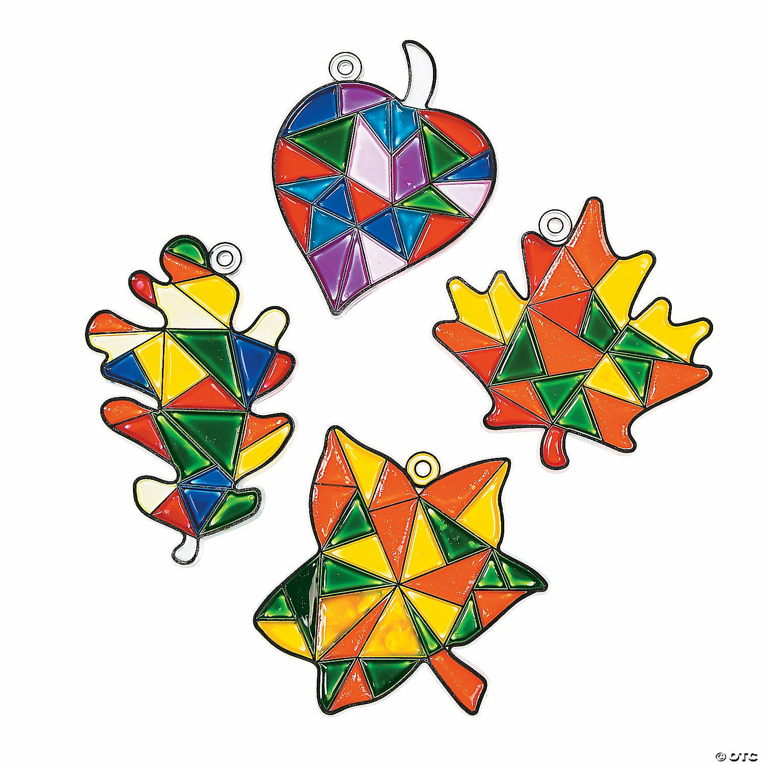 Use your own paint to bring these leaves to life. The sun’s rays bring light to kids’ creativity with these Fall Leaf Suncatchers. Paint and hang in windows for pretty homemade decorations. Use these suncatchers as kids’ crafts for a school carnival activity, fall festivals or share with neighborhood kids for a fun afternoon at home. Plastic. (2 dozen per unit) 4 1/2″ Suncatcher paint sold separately. © OTC