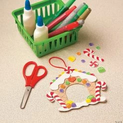 Showcase your favorite festive photo in this Gingerbread House Picture Frame Ornament. With sweet foam shapes ready to bring this Christmas craft to life, this DIY picture frame makes an adorable addition to your fridge or the Christmas tree! Includes self-adhesive foam pieces and satin cord. 5 1/2″ x 4 3/4″ with 2″ photo space. All craft kit pieces are pre-packaged for individual use. Kits include instructions and extra pieces. Makes 12. © OTC