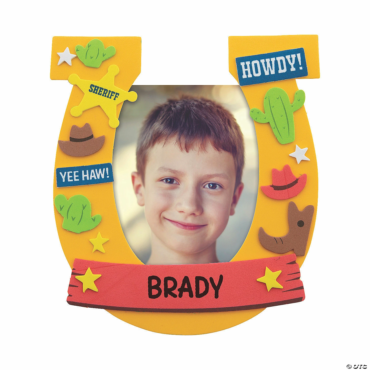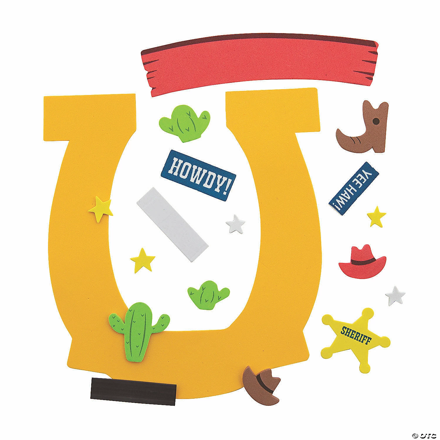 Yee haw! This rootin’ tootin’ lucky DIY horseshoe magnet kit sure does make a fine frame for school pictures and memories of Wild West adventures. Kids can decorate their frames with the Western craft supplies included in this art activity, then keep it as a favor from a cowgirl or cowboy birthday party, or give it to parents or grandparents to hang as a refrigerator magnet. Includes self-adhesive foam shapes. 6″ x 6 1/2″ with a 3″ x 4″ photo space. Makes 12. All craft kit pieces are pre-packaged for individual use. Magnets are packaged separately. Do not discard. Kits include instructions. © OTC