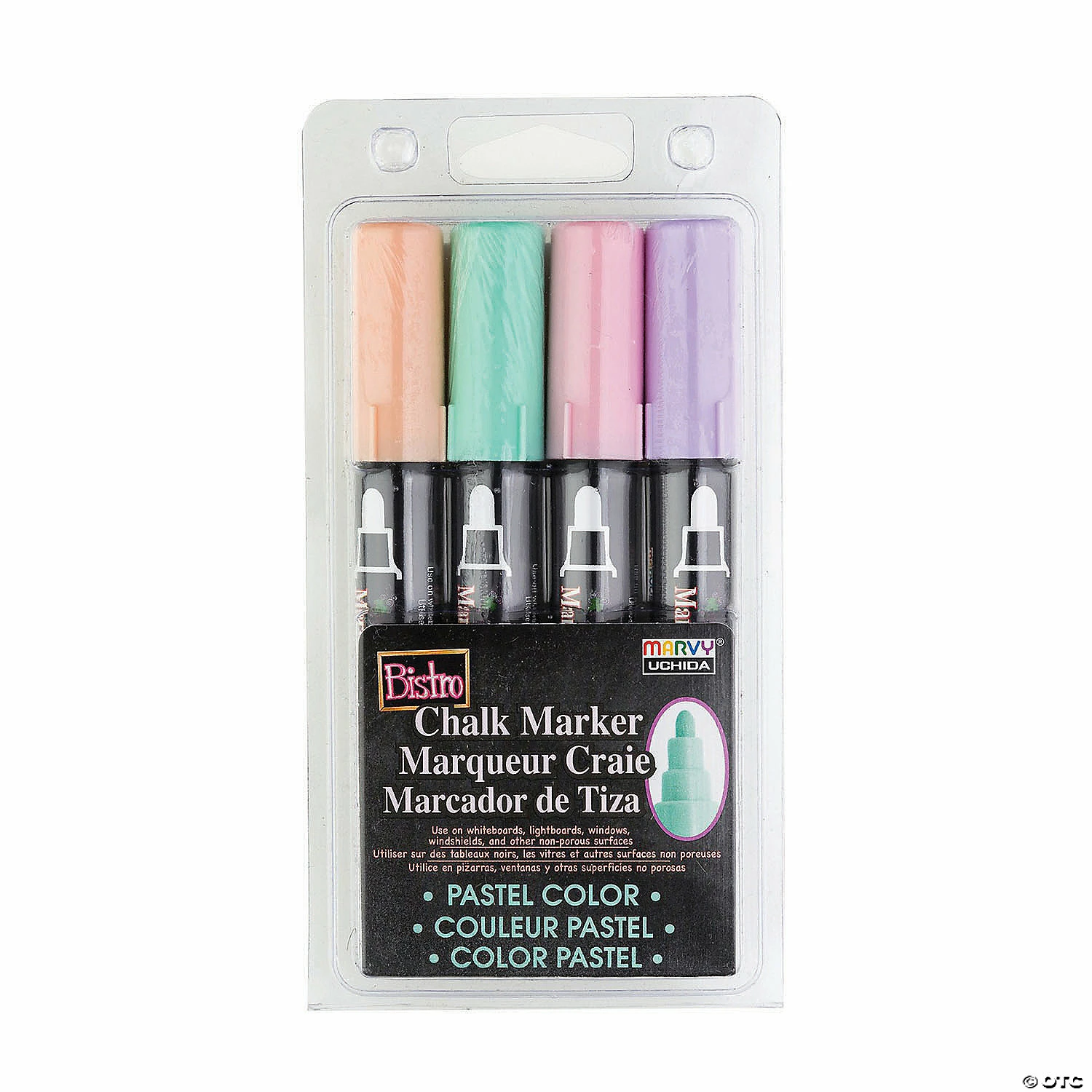 Use Bistro Chalk Markers on chalkboards, light boards, windows, and most non-porous surfaces. A wonderful way to create chalkboard art to attract attention. They are opaque, water based, pigmented, erasable with a damp cloth. Each pack includes 4 markers: pale violet, peppermint, blush pink and pastel peach. Sold as 2 packs for a total of 8 markers. Special Shipping Information: This item ships separately from other items in your order. This item cannot ship to a P.O. Box. This item may be subject to additional processing days. ITEM IS NOT ELIGIBLE FOR EXPEDITED SHIPPING You may initiate a return for unused items within 30 days, if the items are in original packaging with all original materials included with the shipment.