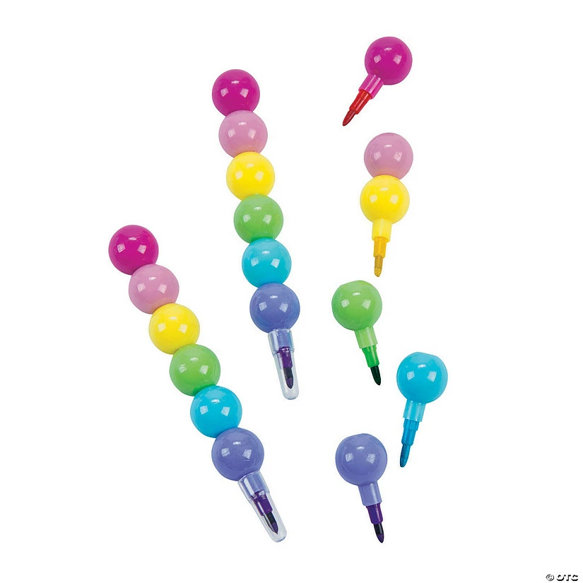 Kids will love stacking these fun crayons while bringing their imaginations to life as they color! A unique spin on traditional crayons, these crayons for kids are a must-have addition to arts and crafts time. Assorted. Safe and non-toxic. (1 dozen per unit) 4 1/4″ Conforms to ASTM D-4236.