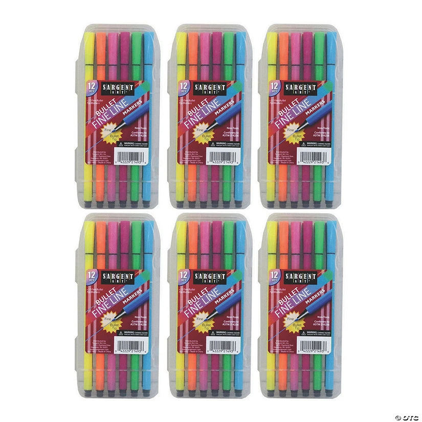 Perfect for drawing, coloring, crafts, and coloring books and pages. Non-toxic and safe. Each pack includes 12 different colors with fine, bullet-shaped tips in a plastic case. Sold as 6 packs for 72 markers total.Special Shipping Information: This item ships separately from other items in your order. This item cannot ship to a P.O. Box. This item may be subject to additional processing days.