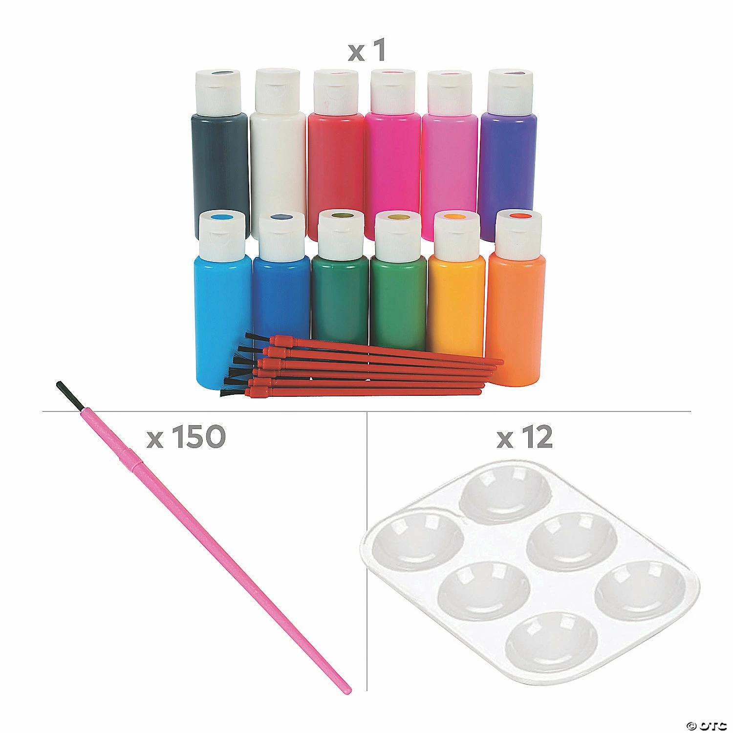 Brighten up your art supplies with this suncatcher paint kit. It comes complete with a vibrant array of suncatcher paints, an assortment of paintbrushes and several plastic paint palettes. You’ll have all the paint you need to transform your suncatcher crafts into a work of window art. (172 pcs. per unit) Includes: • 12 Plastic Rectangular Paint Palettes (5 1/4” x 3 3/4”. Holds up to 6 colors in 1/2” deep wells.)• 150 Plastic Watercolor Paintbrushes (Assorted. 6”– 6 3/4”. Includes 25 of each size: 1, 2, 3, 4, 5 and 6.) • 10-Pc. Suncatcher Paint Set (5 1/2″ Each bottle, 4-oz. Safe and non-toxic. Conforms to ASTM D-4236.)• Assortments are subject to change at any time and may vary from picture shown. Substituted items will be similar in nature.