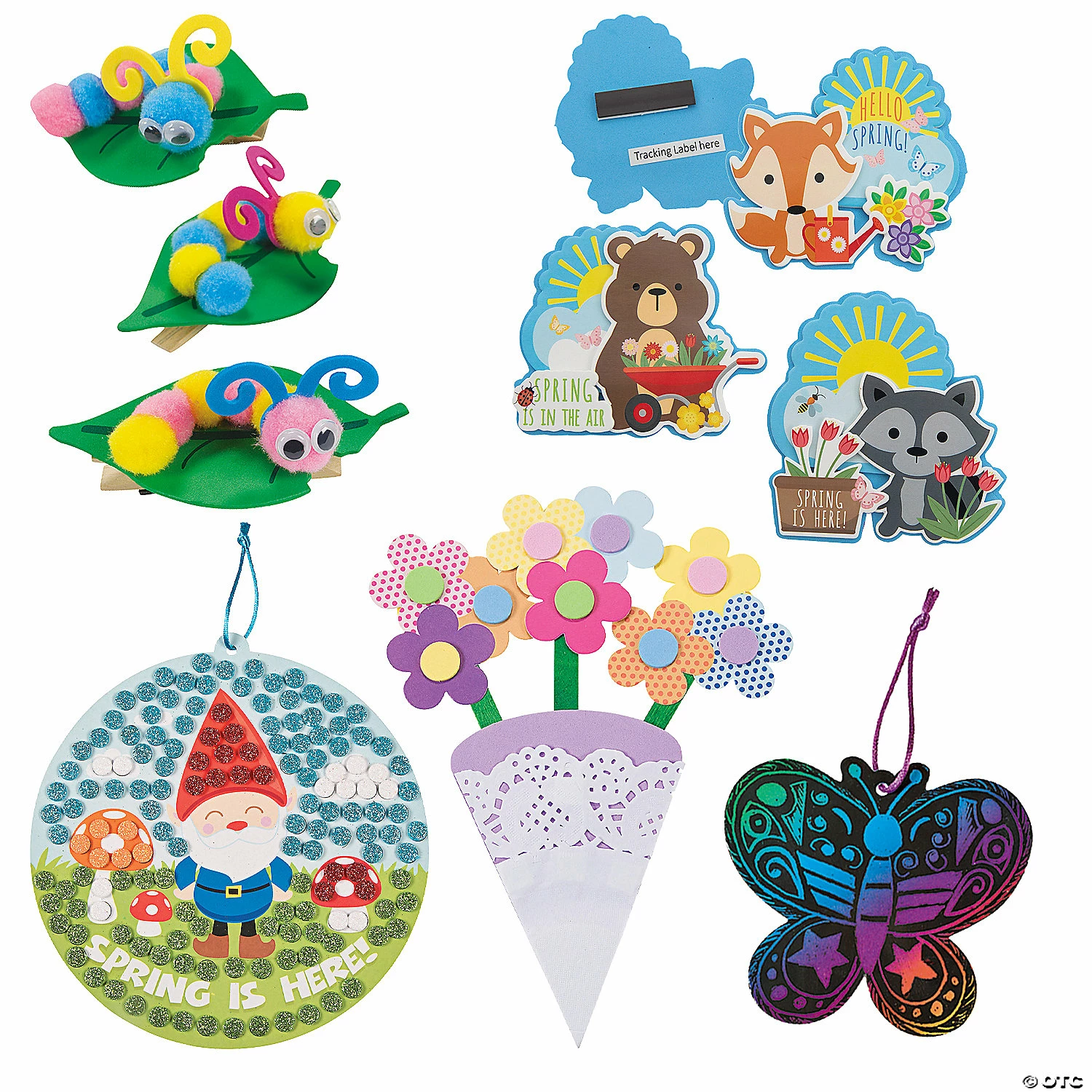 If you’re searching around for spring crafts for kids, this craft assortment is the pick for you! Featuring a variety of fun crafts for kids for hours of fun! (72 pcs. per unit) All craft kit pieces are pre-packaged for individual use. Kits include instructions.Includes:• 24 Paper Magic Color Scratch Butterfly Ornaments (12 wooden scratching tools and 24 satin ribbons per unit. 4″)• 12 Spring Bouquet Craft Kits (Includes self-adhesive foam pieces, paper doilies and wooden craft sticks. Size: 6 1/4″ x 9 1/4″)• 12 Glitter Mosaic Spring Gnome Sign Craft Kits (Includes self-adhesive foam shapes and satin cords for hanging. 8″ diam.) • 12 Foam Woodland Critters Magnet Craft Kits (Includes self-adhesive pieces. 4″ x 3 1/2″)• 12 Pom-Pom Caterpillar Note Holder Craft Kits (Includes wooden clothespins, foam pieces, wiggle eyes and pom-poms. 4 1/2″)• Assortments are subject to change at any time and may vary from picture shown. Substituted items will be similar in nature.