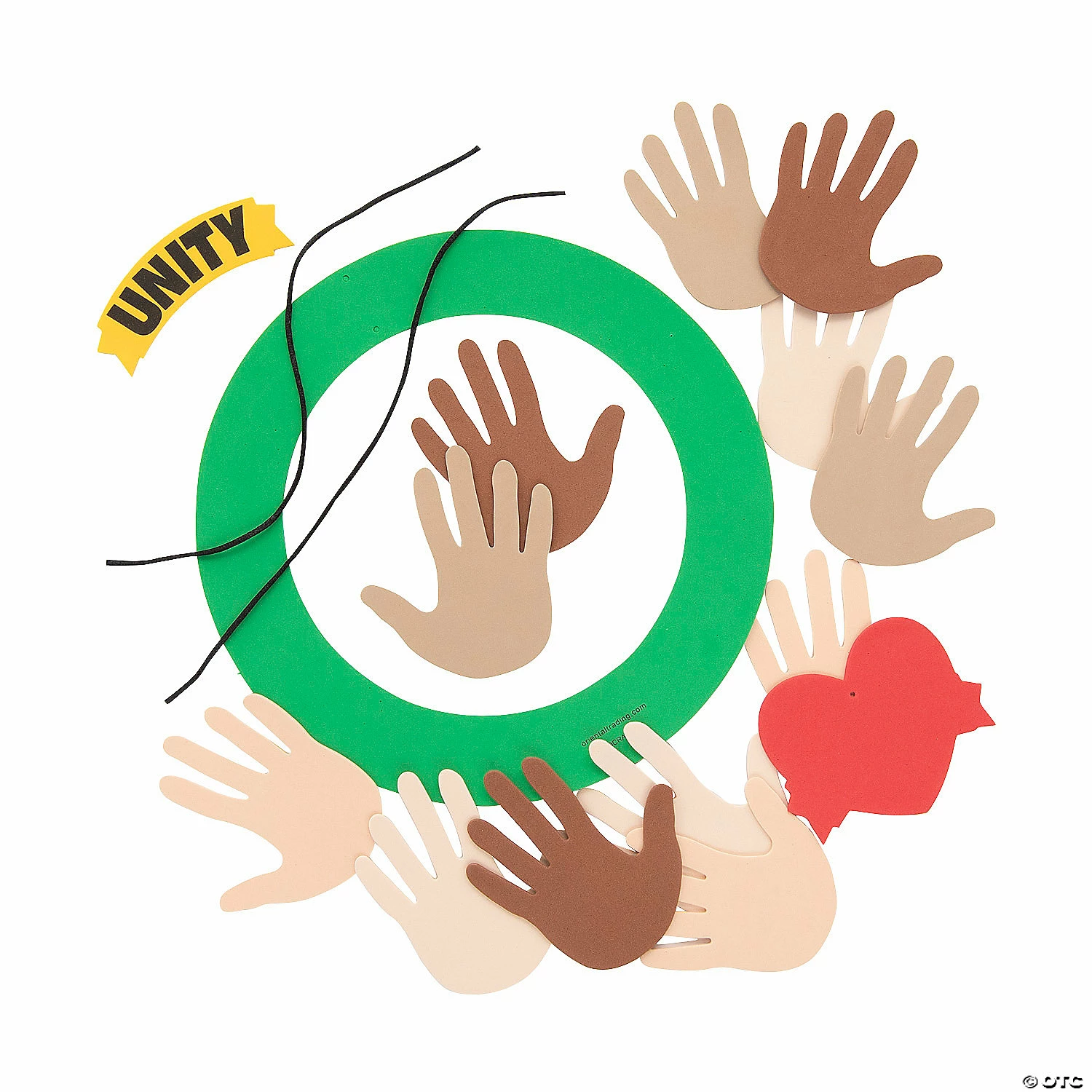 Present a united front when you proudly display these unity wreaths! Not only will little ones enjoy putting these kidsโ crafts together, but they can admire their handiwork with completed wreaths hung on their homeโs front door or classroom bulletin board. Makes a great addition to your year-round home dรฉcor! Includes paper pieces and satin cording. Foam. 10″ x 10″ Makes 12. All craft kit pieces are pre-packaged for individual use. Kits include instructions. ยฉ OTC